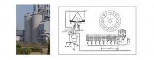CP均化庫是我廠引進(jìn)德國BMH公司的一種新型生料均化庫,其特點(diǎn)電耗低、均化效果好。CP均化庫的均化機(jī)理是庫頂生料通過8條斜槽均勻布料,不同時(shí)期的生料在庫內(nèi)呈橫向分布,庫底充氣系統(tǒng)設(shè)計(jì)更符合生料充氣后的流動性,呈放射狀斜向分布,環(huán)形區(qū)一般分8個(gè)區(qū),每隔5分鐘輪流充氣,充氣區(qū)生料因松動及氣流的引導(dǎo)卸入中心區(qū),庫內(nèi)不同層的生料豎向切割下料實(shí)現(xiàn)生料的均化,不同時(shí)間的生料進(jìn)入中心區(qū)后再進(jìn)行氣體強(qiáng)烈混合均化,從而達(dá)到理想的均化效果。